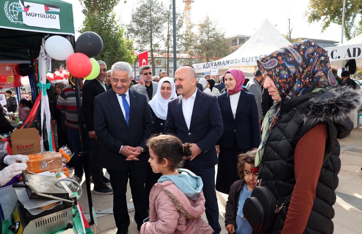 Adıyaman Valisi Dr. Osman Varol, Adıyaman İl Müftüsü Mevlüt Haliloğlu ve vatandaşlarla birlikte Diyanet İşleri Başkanlığı ve Türkiye Diyanet Vakfı'nın (TDV) 81 ilde yürüttüğü Filistin'e destek kampanyası kapsamında, Adıyaman İl Müftülüğü ve TDV Adıyaman Şubesi tarafından düzenlenen "Hayır Çarşısı"nı gezerek destek sağladı.