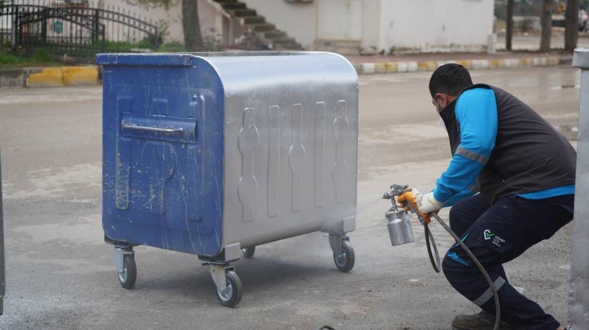 Boyama işleminin ardından dezenfekte edilen konteynerler hijyenik hale getirilerek ihtiyaç duyulan mahallelere dağıtılıyor.