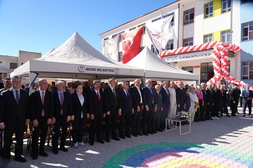 Besni ilçesinde hayırsever Dr. Necip Öztürk ve ailesi tarafından yaptırılan 16 derslikli Dr. Necip Öztürk Ortaokulunun açılışı törenle yapıldı. Açılış programına Milli Eğitim Bakanı Yusuf Tekin, Adıyaman Valisi Osman Varol, Mersin Valisi Atilla Toros, Adıyaman Milletvekili Hüseyin Özhan, Gaziantep Milletvekili Melih Meriç, Adıyaman Belediye Başkanı Abdurrahman Tutdere, Besni Kaymakamı Ahmet Oğuz Arslan, Besni Belediye Başkanı Reşit Alkan, öğretmenler, öğrenciler ve çok sayıda vatandaş katıldı.