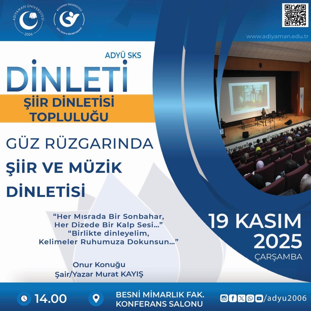 ADIYAMAN (PERRE) - (Berfin Gürbüz) - Adıyaman Üniversitesi Araştırma Görevlisi İpek Turan'ın öncülüğünde kurulan ve üniversite öğrencilerinin katılımıyla faaliyet gösteren ADYÜ Şiir Topluluğu, bu kez Besni Meslek Yükseko...