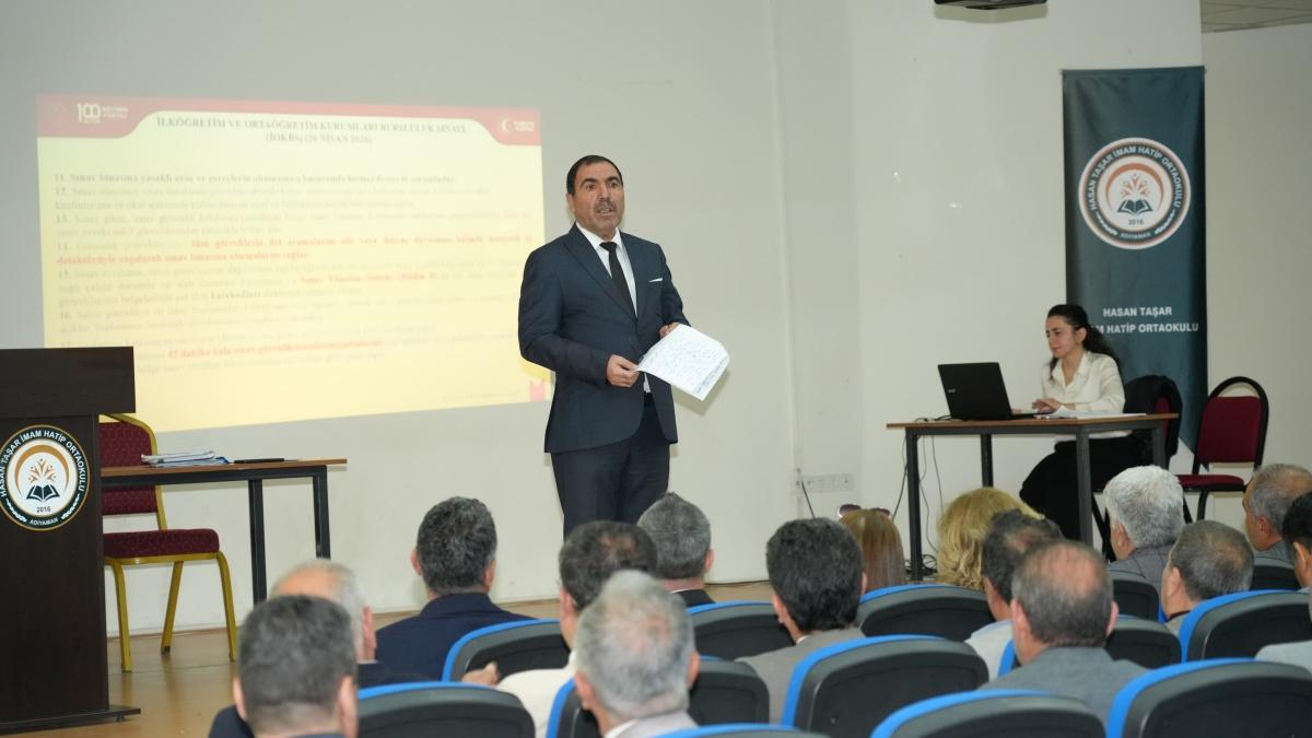 26 Nisan 2026 tarihinde gerçekleştirilecek olan İlköğretim ve Ortaöğretim Kurumları Bursluluk Sınavı (İOKBS) öncesinde, Yükseköğretim ve Yurt Dışı Eğitim Genel Müdürlüğü Sosyal Ortaklar ve Projeler Daire Başkanı Sayın Saadettin Güzel ile İl Millî Eğitim Müdürü Ali Tosun'un katılımıyla, Hasan Taşar İmam Hatip Ortaokulu Konferans Salonu'nda sınav güvenliği ve uygulama süreçlerine yönelik hazırlık toplantısı gerçekleştirildi.