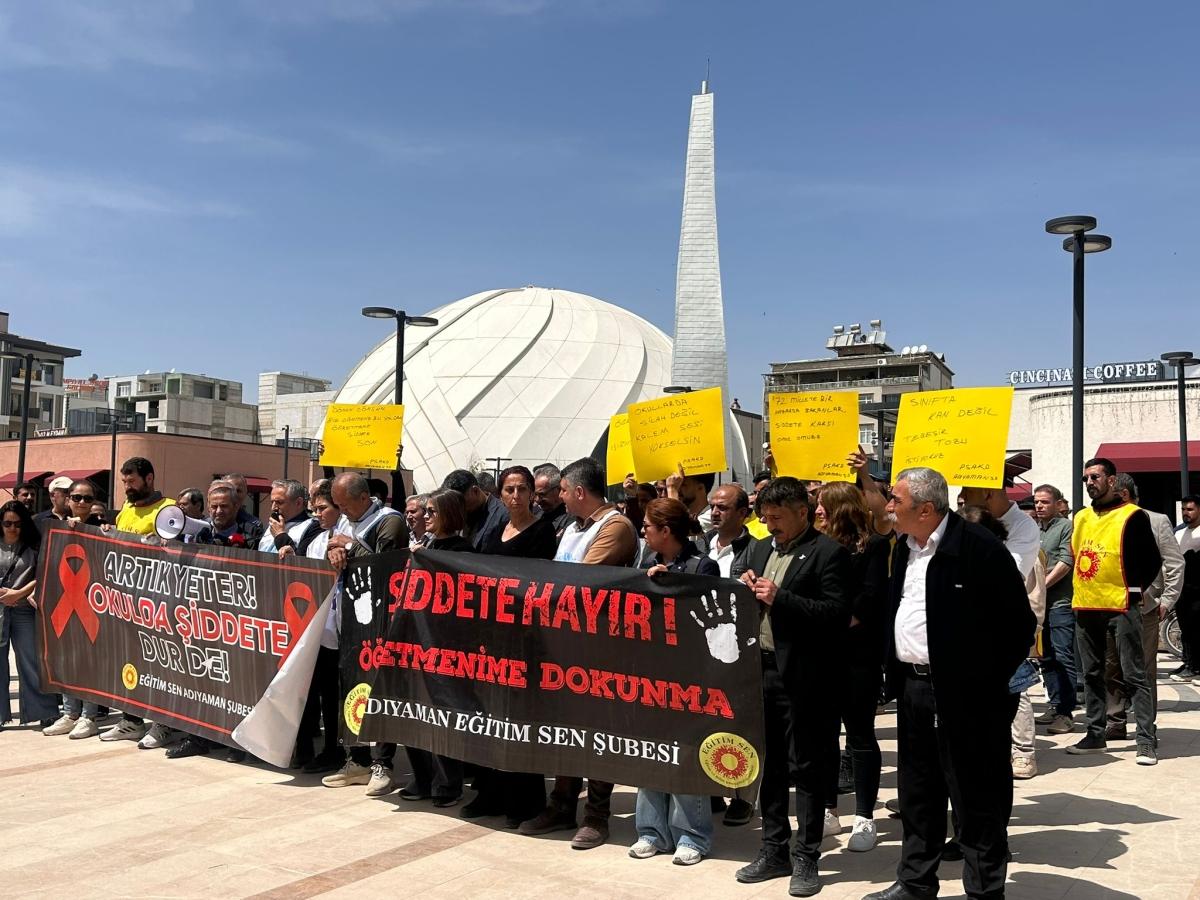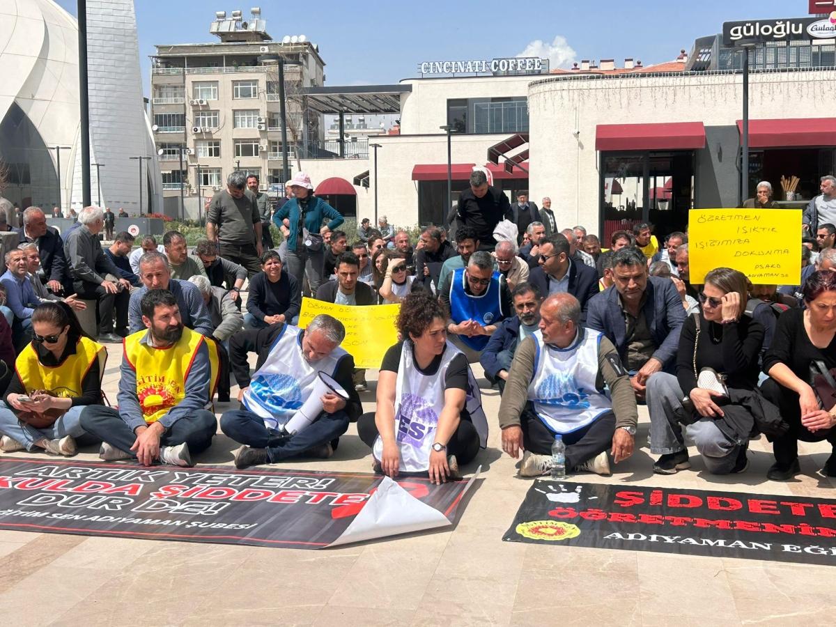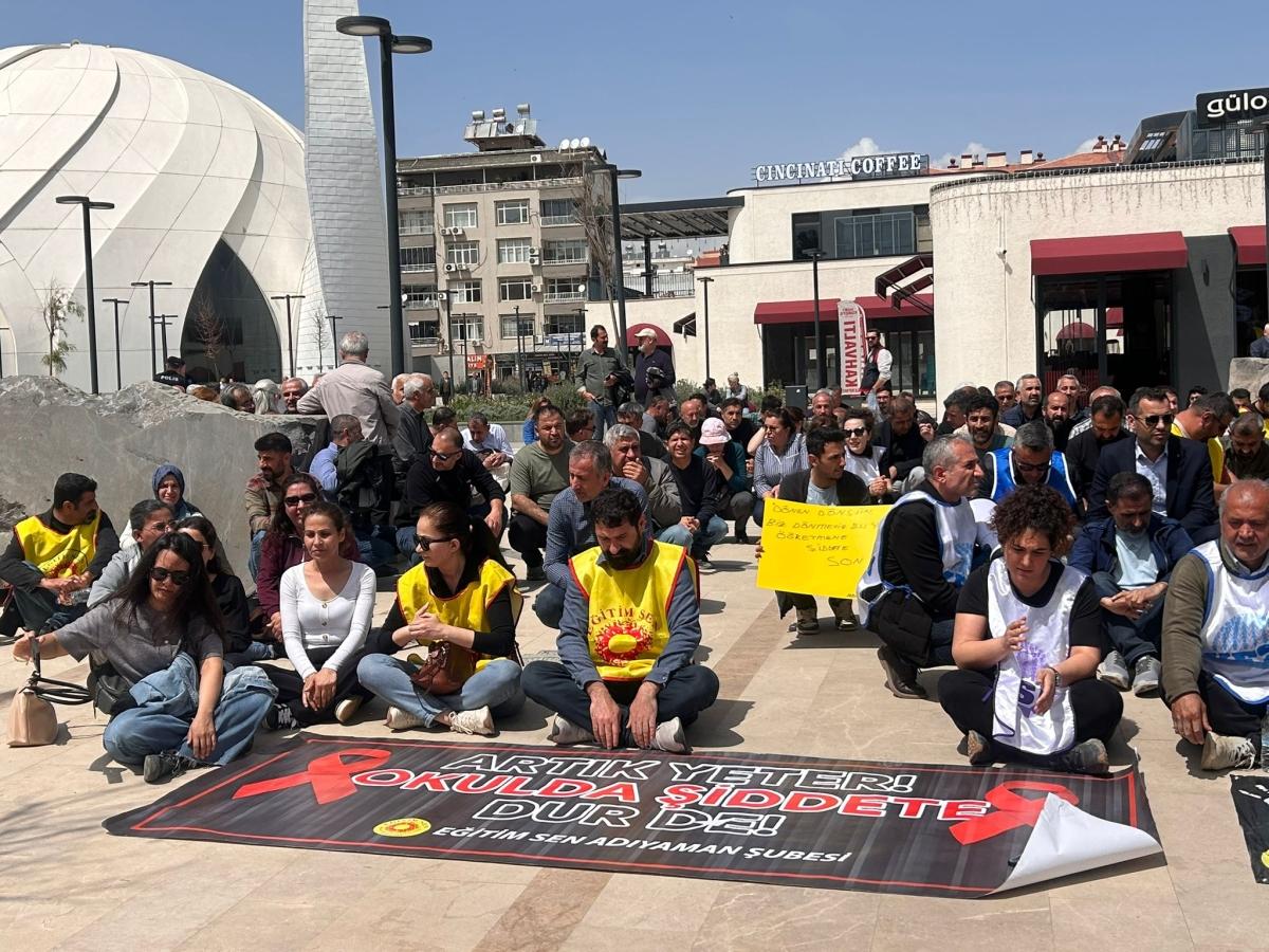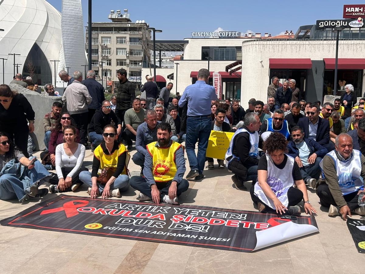 Eğitim Sen Adıyaman Şubesi, Şanlıurfa'nın Siverek ilçesi ile Kahramanmaraş'ta okullarda meydana gelen silahlı saldırılara ilişkin kent meydanında basın açıklaması yaptı ve oturma eylemi gerçekleştirdi.