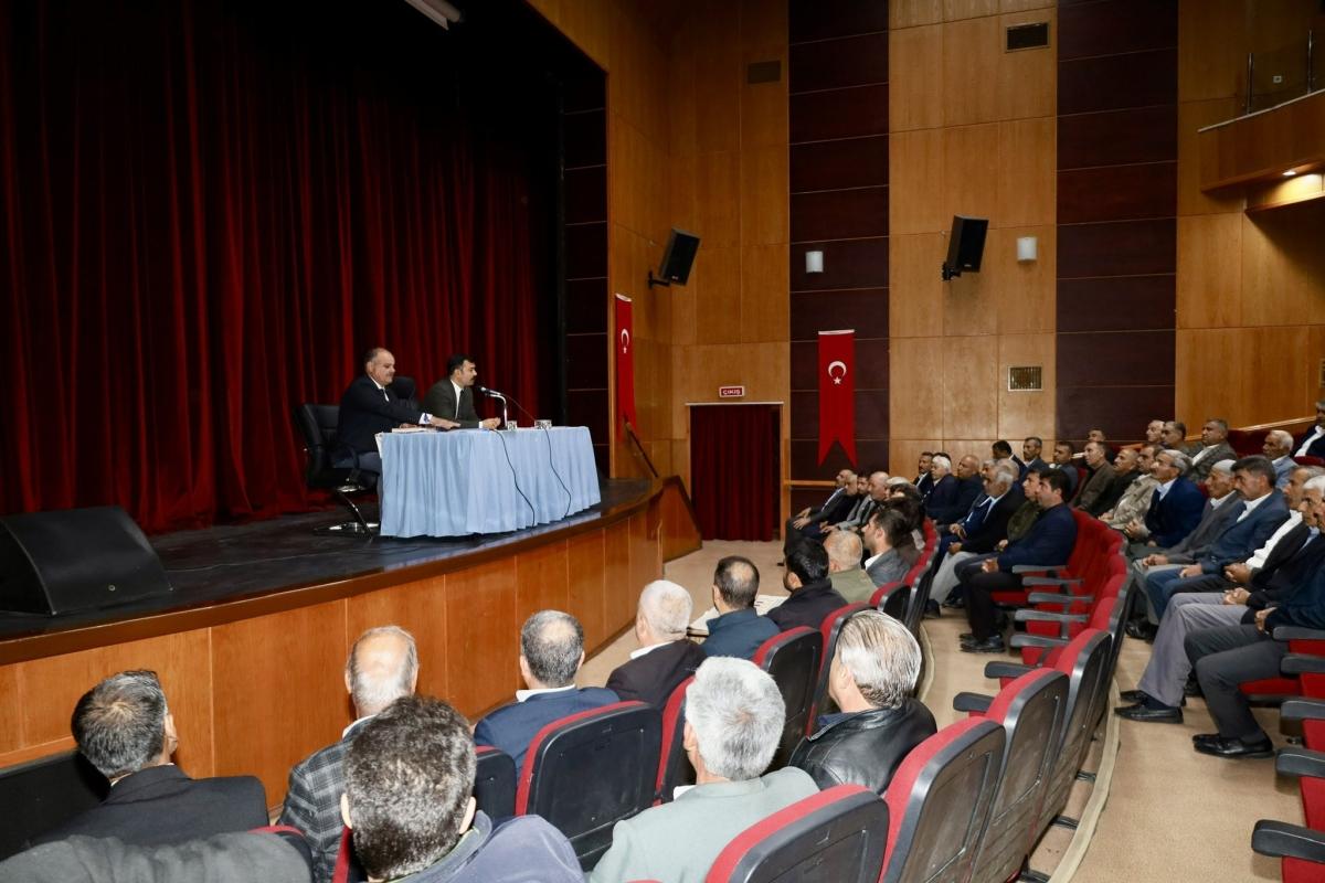Mustafa Kahtalı Kültür Merkezi'nde yapılan toplantıda, köylerin öncelikli ihtiyaçları üzerine kapsamlı değerlendirmeler yapılırken, yürütülmesi planlanan yeni yatırımlar hakkında istişarelerde bulunuldu.