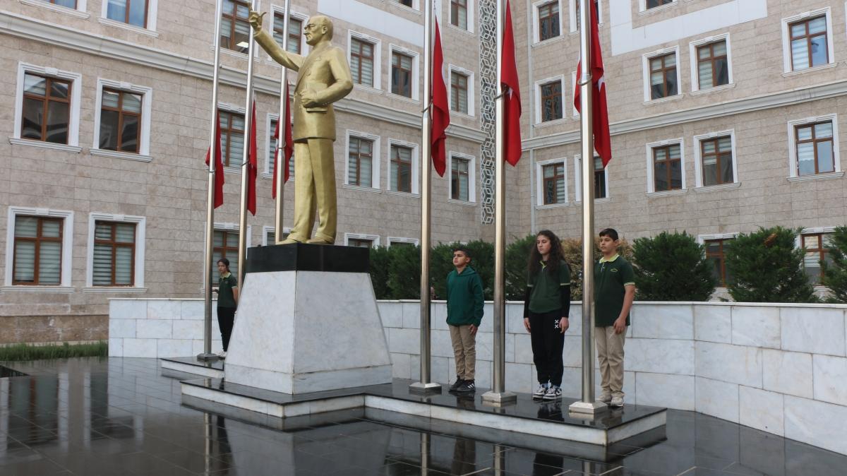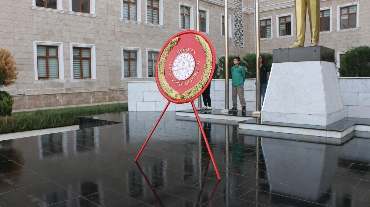 Tören, İl Milli Eğitim Müdürlüğü çelenginin Atatürk Anıtı'na sunulması, ardından saygı duruşu ve İstiklal Marşı'nın okunmasıyla tamamlandı.