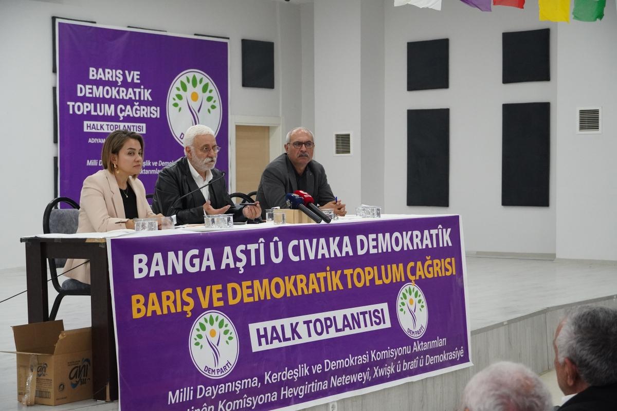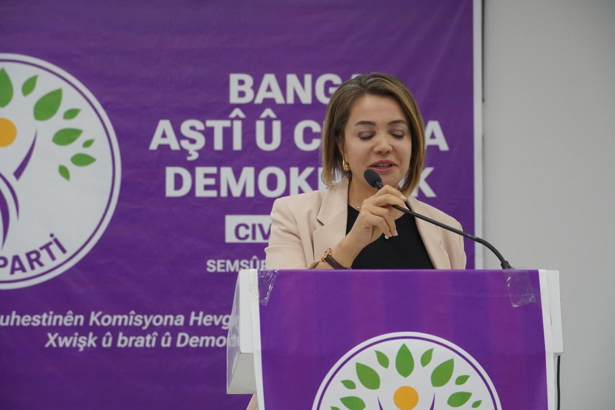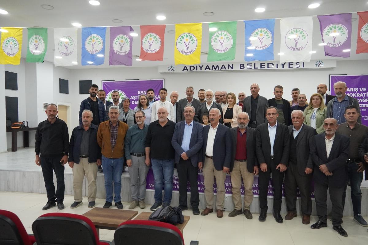 DEM Parti Adıyaman İl Eş Başkanı Gönül Şahin ise, kadınların barış sürecindeki rolüne dikkat çekerek, "Burada buluşmamız sadece bir toplantı değil, halkın iradesine, kadınların öncülüğüne ve demokratik bir yaşama çağrıdır. Biz kadınlar adaletsizliği de, yoksulluğu da en çok yaşayanlarız. Ama aynı zamanda barışı, dayanışmayı ve umudu büyütenleriz" ifadelerine yer verdi.