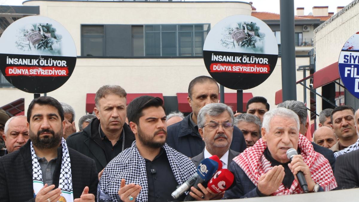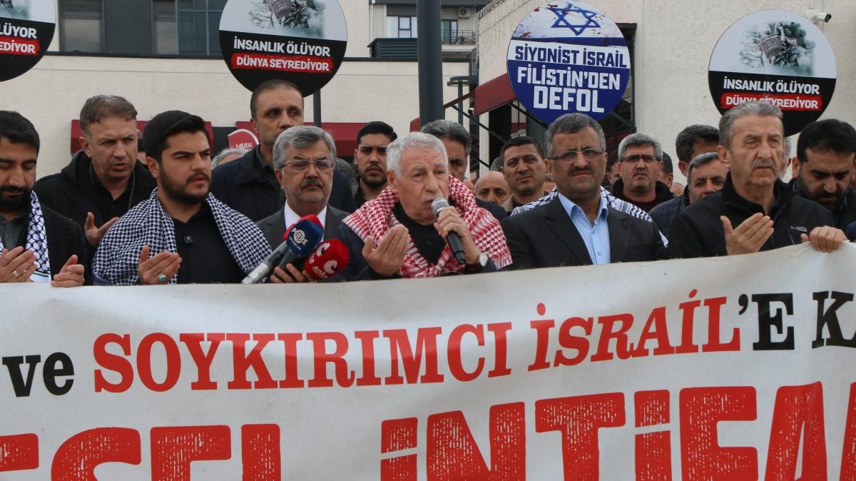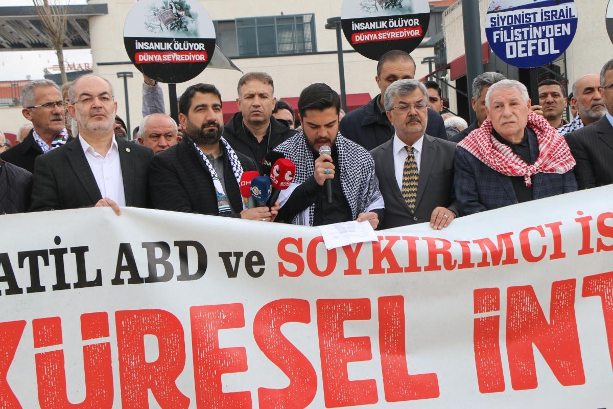 Adıyaman Filistin Dayanışma Platformu adına konuşan Abdulkadir Yılmaz, dünyada yaşanan gelişmeleri sert sözlerle eleştirdi. Yılmaz, "Gözü dönmüş, azgın bir grup Siyonist tarafından planlanmış ve ne yazık ki uygulamaya konulmuş, akıl almaz bir dönemi yaşamaktayız" dedi.
