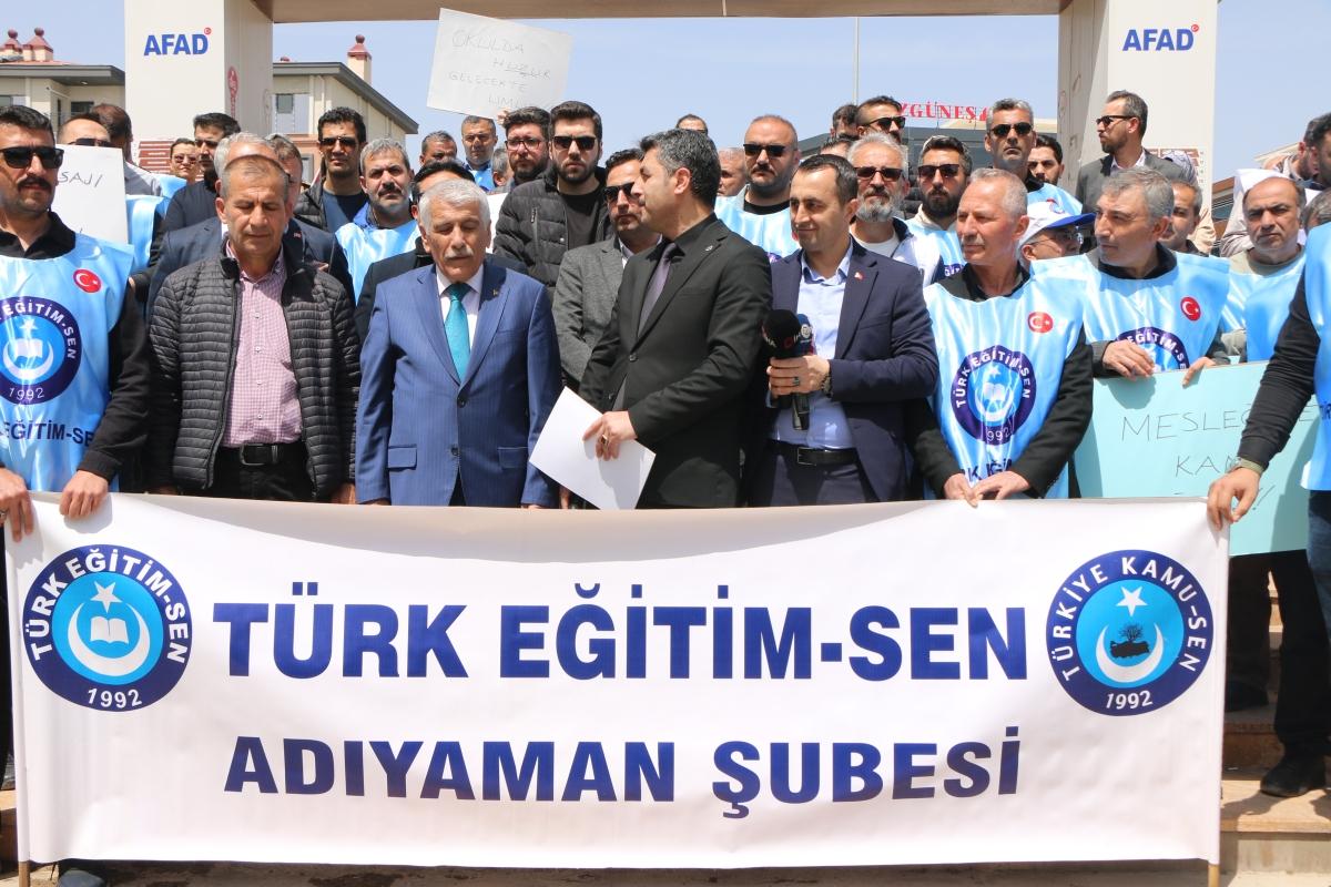 ADIYAMAN (PERRE) - Berfin GÜRBÜZ-Türk Eğitim- Sen Adıyaman şubesi Siverek ilçesinde bir lisede meydana gelen silahlı saldırının ardından bir basın açıklaması gerçekleştirdi.