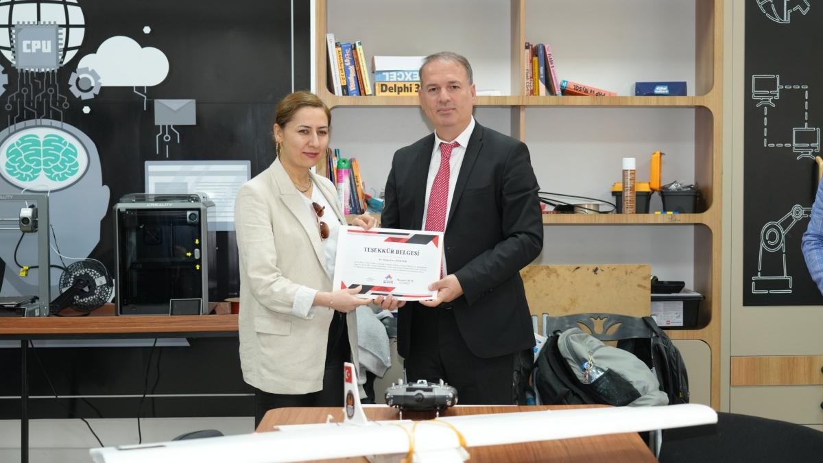 Ziyaret kapsamında kurs sürecine ilişkin yetkililerden bilgi alan Müdür Tosun, atölye ortamında gerçekleştirilen uygulamalı çalışmaları yerinde inceledi. Öğrenciler tarafından tasarlanan ve yapım aşamaları sürdürülen İHA projeleri hakkında detaylı sunumlar yapıldı.