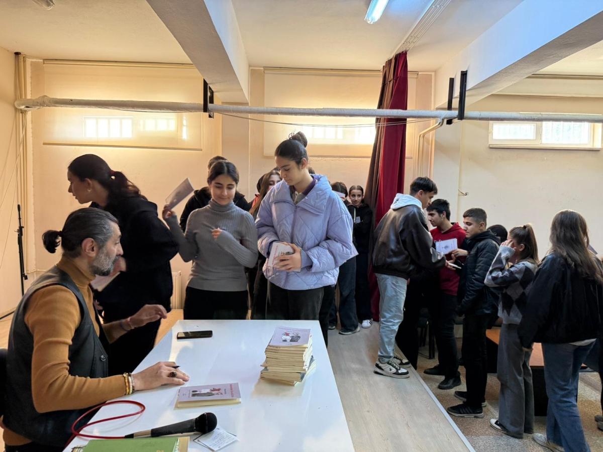 Bilgi Anadolu Lisesi konferans salonunda düzenlenen program, yüzün üzerinde öğrencinin ve öğretmenlerin katılımıyla gerçekleştirildi. Etkinlik, öğrenciler ve eğitimciler tarafından ilgiyle takip edilirken, program sonunda Murat Kayış, kitaplarını imzalayarak öğrencilere hediye etti.