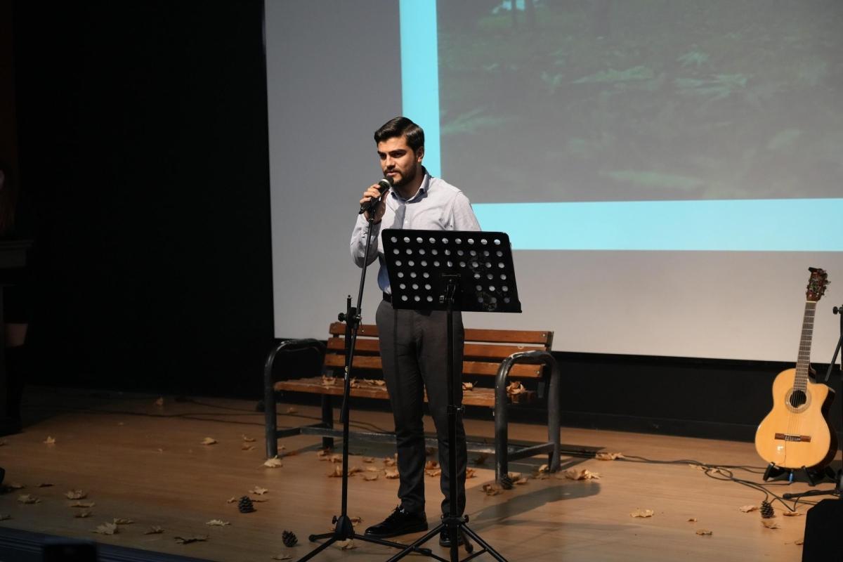Edebiyat ve müziğin iç içe geçtiği etkinlik, "Her mısrada bir sonbahar, her dizede bir kalp sesi... Birlikte dinleyelim, kelimeler ruhumuza dokunsun." temasıyla düzenlendi. Katılımcılara duygu dolu anlar yaşatan programda, öğrenciler ve akademisyenler sahne aldı.