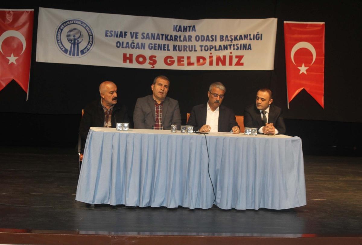 Kahta Esnaf ve Sanatkarlar Odası Başkanlığı Olağan Genel Kurul Toplantısı, Mustafa Kahtalı Kültür Merkezi'nde yapıldı. Toplantı, saygı duruşu ve İstiklal Marşı'nın okunmasıyla başladı. Divan başkanı ve divan üyelerinin seçilmesinin ardından, divan başkanı tarafından okunan gündem maddelerinin oy birliğiyle kabulünün ardından seçime gidildi.